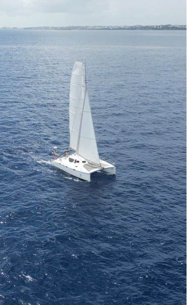 Longueur: 10,99m Flottaison: 10,99m Largeur: 6,43m Dérives sabres: 0,44/2,19m Poids: 3000kg En charge: 4750kg Mât: 17m / 6m² Grand-voile: 59,50m² Foc autovireur: 27,50m² Drifter : 60m² Spi: 124m² Sous barrots: 1,65/2m Hors-bord 4 temps 10CV |