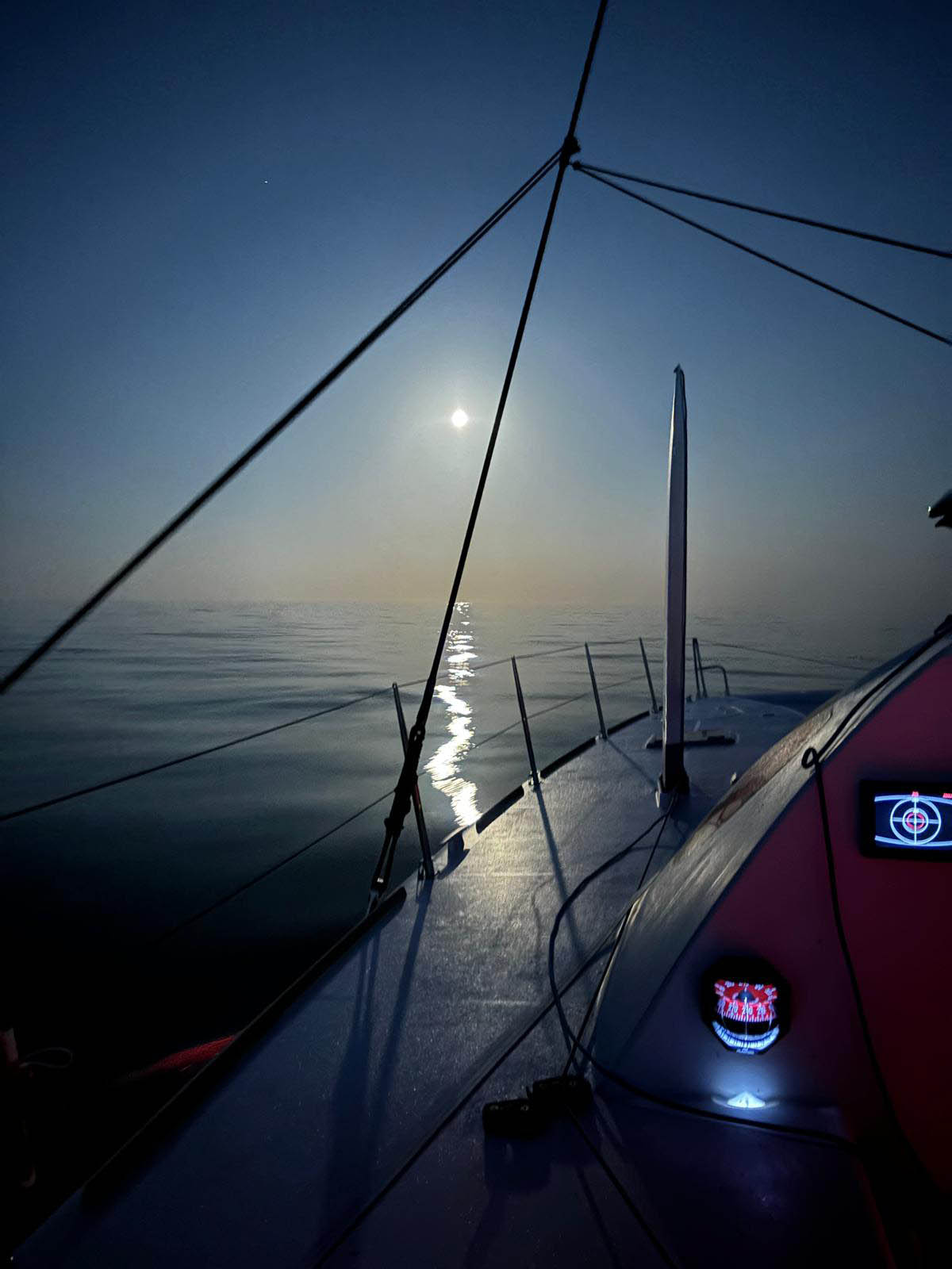 Ses moyennes soutenues proviennent d'une longueur flottaison importante avec sections semi-circulaires, d'une grande largeur avec des extrémités puissantes, d'un fardage réduit La plate-forme courte et bien dégagée de l'eau et des poids très centrés privilégient la douceur des mouvements.